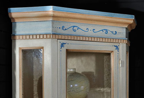 Argentiera ad angolo laccata e decorata, 1 porta e 1 cassetto