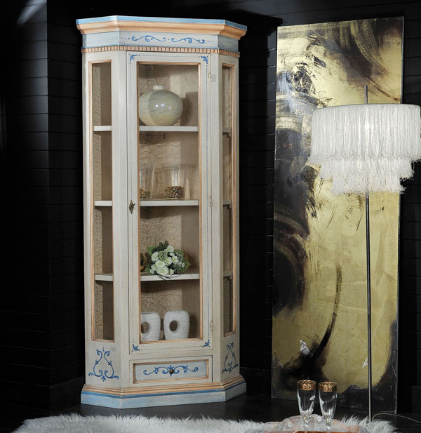 Argentiera ad angolo laccata e decorata, 1 porta e 1 cassetto